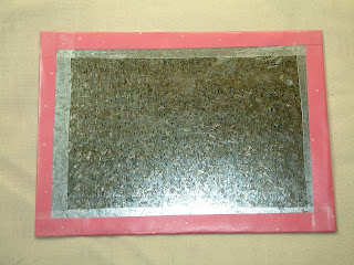 I tried to do this by just running the whole flashing sheet with paper attached through my Xyron with the laminating cartridge.  It worked great, except my magnets wouldn't stick as well because of the extra layer.  If you have stronger magnets, you can just laminate the whole sheet to make it easier.  The blue and yellow one (above) was done by laminating the whole thing then cutting the middle out.  The pink one was done with Con-Tact paper just on the edges.